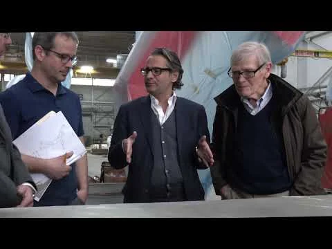 The facade, cast in white bronze, embraces the history of the site, which was home to a metal recycling yard for more than 50 years. studioMDA collaborated with Polich Tallix, a foundry that has a long history of working with artists, to create the intricate facade. studioMDA scanned a slate plate to extract its texture and then digitally manipulated this texture to create a monolithic pattern that runs the whole width of the facade. This digital model then formed the basis of 3d-printed sand molds that were later cast in white bronze and divided into panels for installation on site. The result is a testament to the collaborative work between designer and fabricator, while speaking to the history of the site and creating a powerful visual marker for the entrances to the High Line Nine.